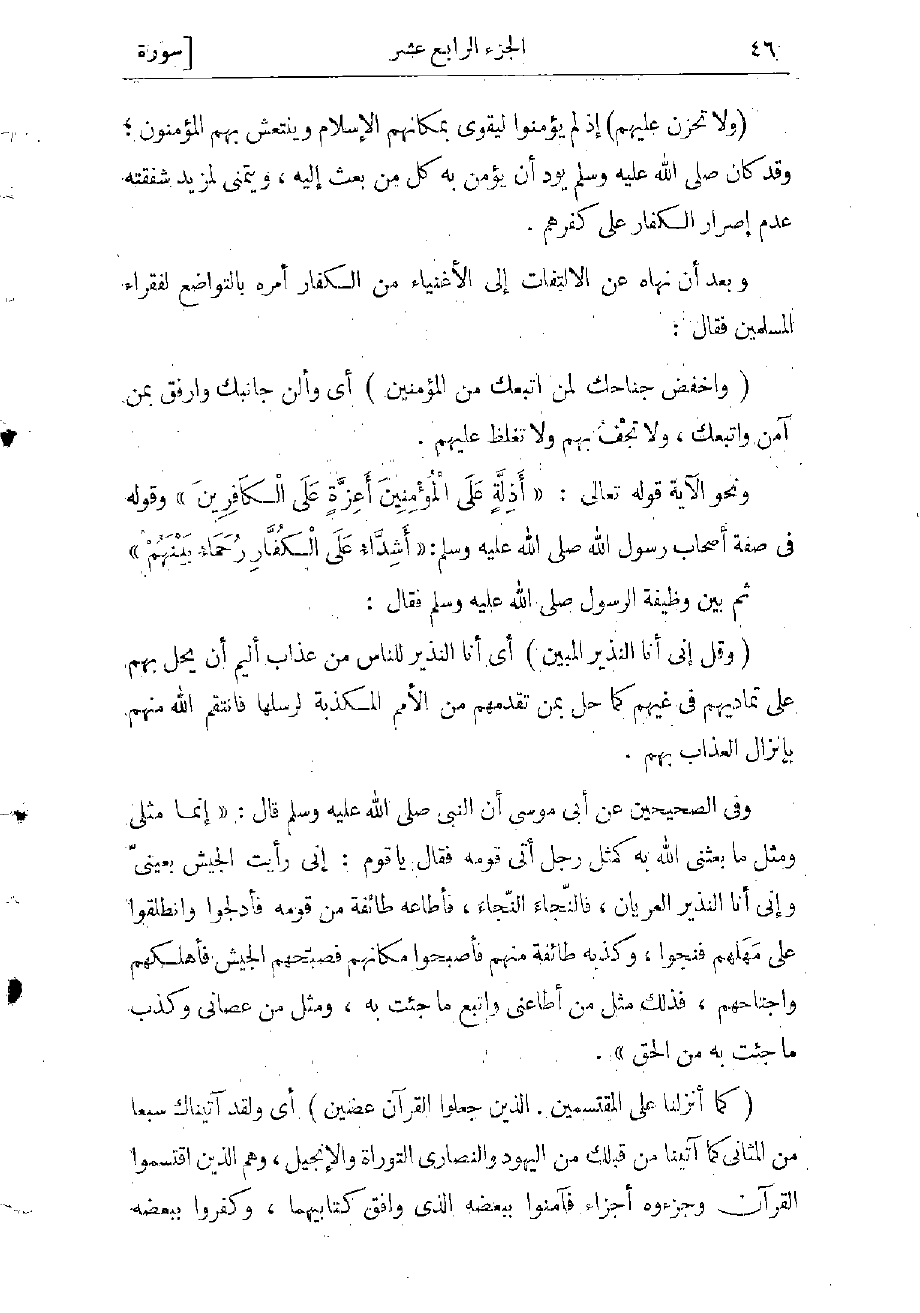 (وَاخْفِضْ جَناحَكَ لِمَنِ اتَّبَعَكَ مِنَ الْمُؤْمِنِينَ) أي وألن جانبك، وارفق بمن آمن بك واتبعك، ولا تجف بهم، ولا تغلظ عليهم.