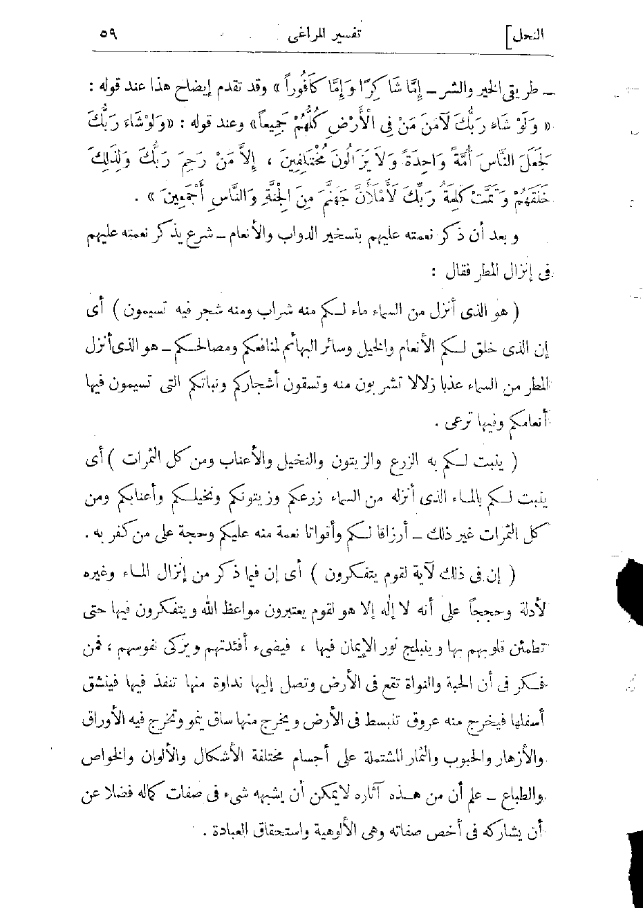 (هُوَ الَّذِي أَنْزَلَ مِنَ السَّماءِ ماءً لَكُمْ مِنْهُ شَرابٌ وَمِنْهُ شَجَرٌ فِيهِ تُسِيمُونَ) أي إن الذي خلق لكم الأنعام والخيل وسائر البهائم لمنافعكم ومصالحكم- هو الذي أنزل المطر من السماء عذبا زلالا تشربون منه وتسقون أشجاركم ونباتكم التي تسيمون فيها أنعامكم وفيها ترعى.