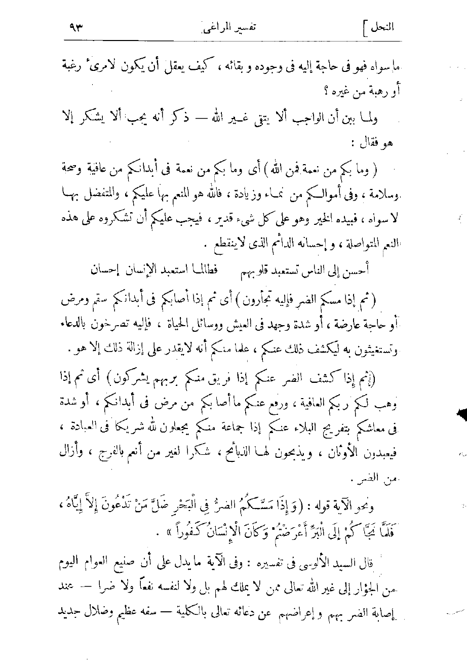 قال السيد الآلوسى فى تفسيره: وفى الآية ما يدل على أن صنيع العوام اليوم من الجؤار إلى غير الله تعالى ممن لا يملك لهم بل ولا لنفسه نفعا ولا ضرا- عند إصابة الضر بهم وإعراضهم عن دعائه تعالى بالكلية- سفه عظيم وضلال جديد