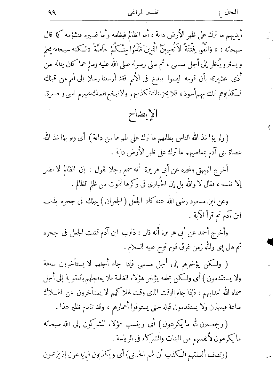 (وَلكِنْ يُؤَخِّرُهُمْ إِلى أَجَلٍ مُسَمًّى فَإِذا جاءَ أَجَلُهُمْ لا يَسْتَأْخِرُونَ ساعَةً وَلا يَسْتَقْدِمُونَ) أي ولكن بحمله يؤخر هؤلاء الظلمة فلا يعاجلهم بالعقوبة إلى أجل سماه الله لعذابهم، فإذا جاء الوقت الذي وقت لهلاكهم لا يستأخرون عن الهلاك ساعة فيمهلون ولا يستقدمون قبله حتى يستوفوا أعمارهم، وقد تقدم نظير هذا.