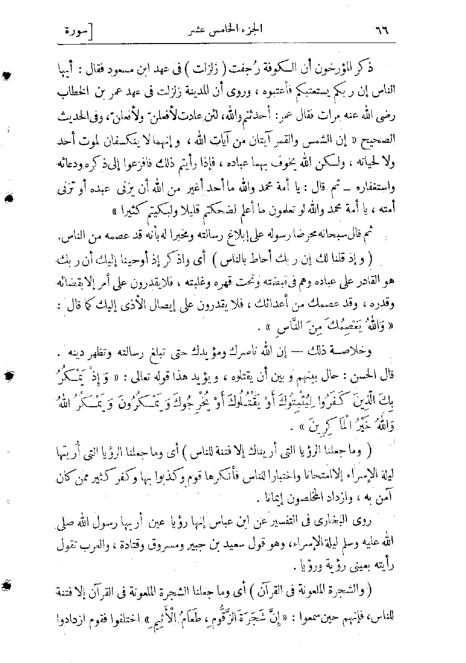 (وَالشَّجَرَةَ الْمَلْعُونَةَ فِي الْقُرْآنِ) أي وما جعلنا الشجرة الملعونة فى القرآن إلا فتنة للناس، فإنهم حين سمعوا: «إنّ شجرة الزّقوم، طعام الأثيم» اختلفوا، فقوم ازدادوا
