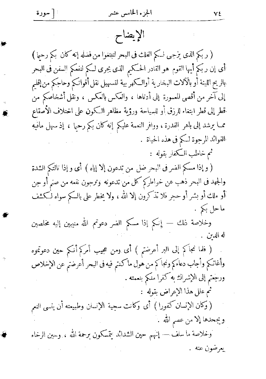 (رَبُّكُمُ الَّذِي يُزْجِي لَكُمُ الْفُلْكَ فِي الْبَحْرِ لِتَبْتَغُوا مِنْ فَضْلِهِ إِنَّهُ كانَ بِكُمْ رَحِيماً) أي إن ربكم أيها القوم هو القادر الحكيم الذي يجرى لكم لنفعكم السفن فى البحر بالريح اللينة أو بالآلات البخارية أو الكهربائية، لتسهيل نقل أقواتكم وحاجكم من إقليم إلى آخر من أقصى المعمورة إلى أدناها، والعكس بالعكس، ونقل أشخاصكم من قطر إلى قطر ابتغاء للرزق أو للسياحة ورؤية مظاهر الكون على اختلاف الأصقاع مما يرشد إلى باهر القدرة، ووافر النعمة عليكم، إنه كان بكم رحيما، إذ سهل ما فيه الفوائد المرجوة لكم فى هذه الحياة.