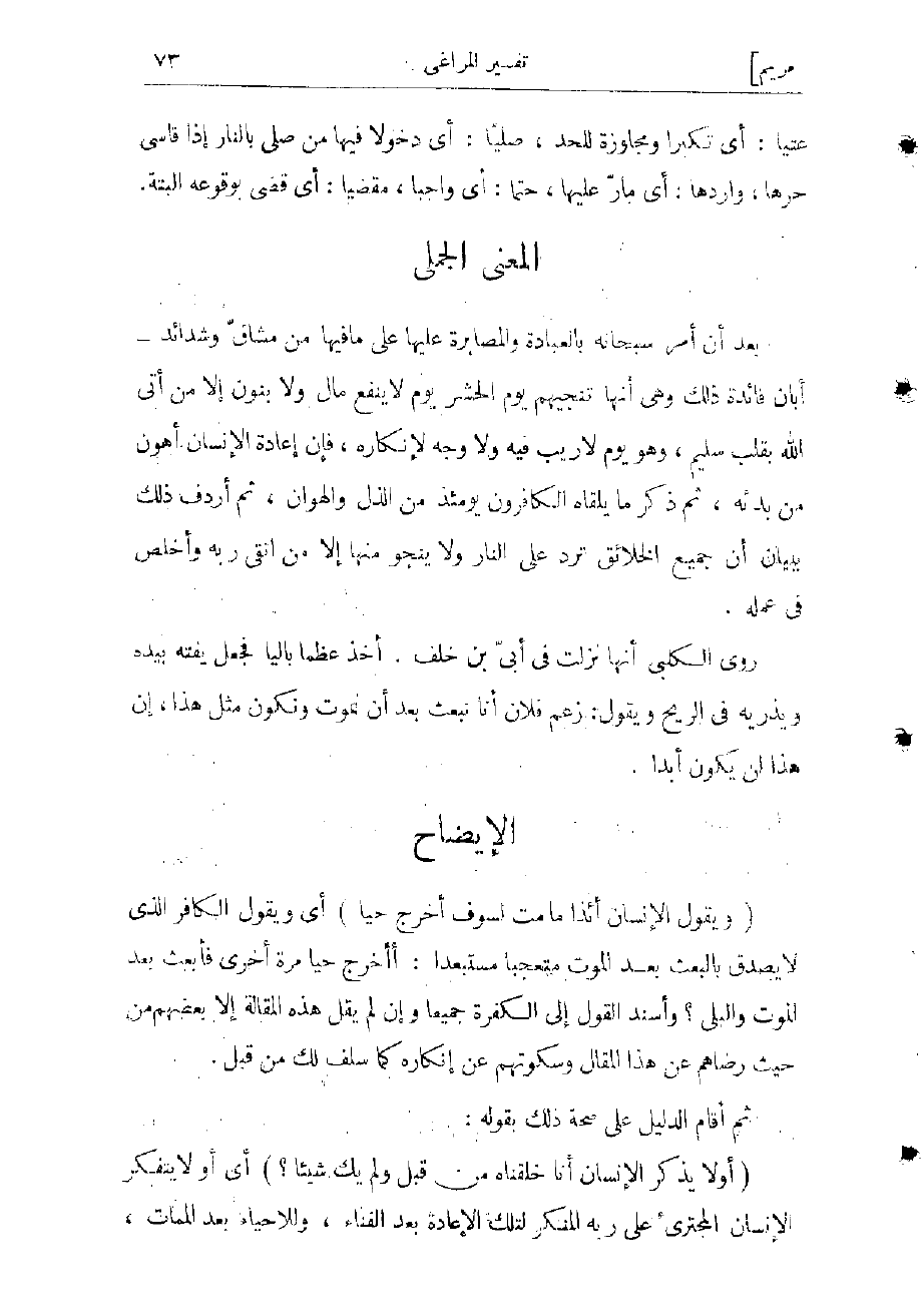 عتيا: أي تكبرا ومجاوزة للحد، صليّا: أي دخولا فيها من صلّى بالنار إذا قاسى حرها، واردها: أي مارّ عليها، حتما: أي واجبا، مقضيا: أي قضى بوقوعه البتة.