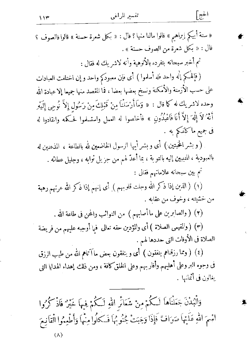 (1) (الَّذِينَ إِذا ذُكِرَ اللَّهُ وَجِلَتْ قُلُوبُهُمْ) أي إنهم إذا ذكر الله عرتهم رهبة من خشيته، وخوف من عقابه.