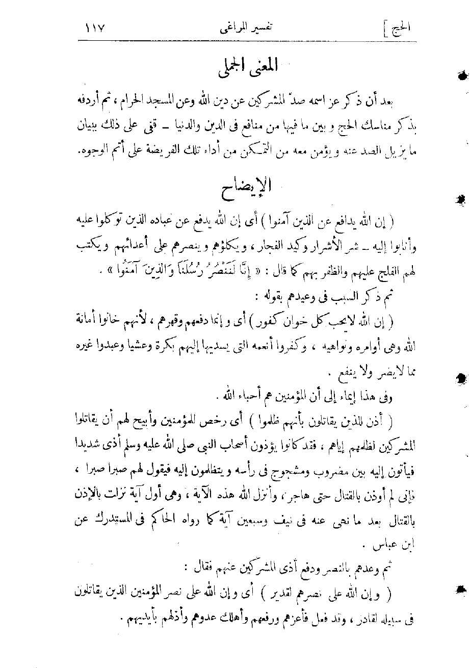 بعد أن ذكر عز اسمه صدّ المشركين عن دين الله وعن المسجد الحرام، ثم أردفه ذكر مناسك الحج، وبين ما فيها من منافع فى الدين والدنيا- قفى على ذلك ببيان ما يزيل الصدّ عنه ويؤمن معه من التمكن من أداء تلك الفريضة على أتم الوجوه.