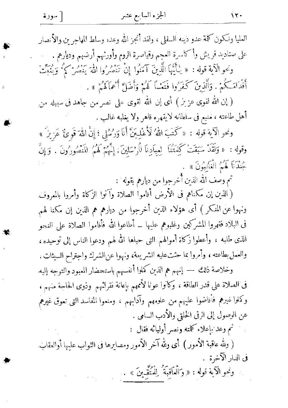 العليا، وتكون كلمة عدو دينه السفلى، ولقد أنجز الله وعده. وسلط المهاجرين والأنصار على صناديد قريش وأكاسرة العجم وقياصرة الروم وأورثهم أرضهم وديارهم.