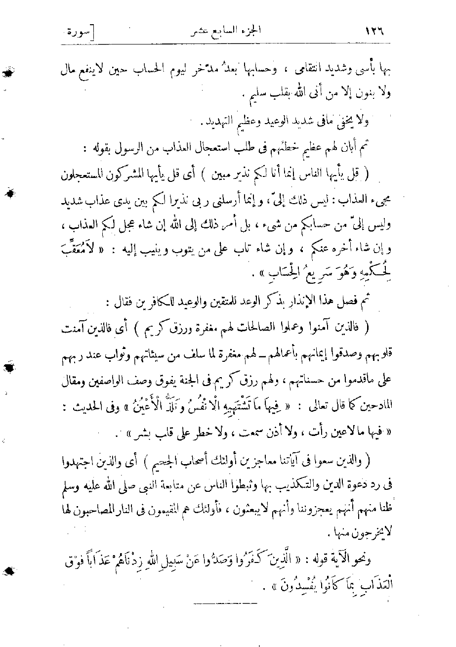 ونحو الآية قوله: «الَّذِينَ كَفَرُوا وَصَدُّوا عَنْ سَبِيلِ اللَّهِ زِدْناهُمْ عَذاباً فَوْقَ الْعَذابِ بِما كانُوا يُفْسِدُونَ» .
