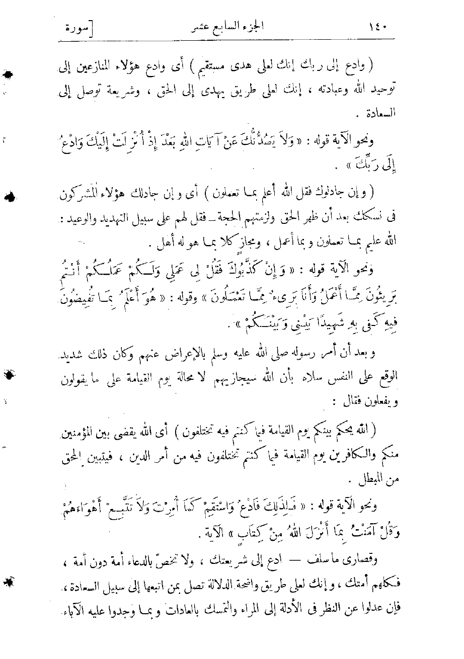 ونحو الآية قوله: «فَلِذلِكَ فَادْعُ وَاسْتَقِمْ كَما أُمِرْتَ وَلا تَتَّبِعْ أَهْواءَهُمْ وَقُلْ آمَنْتُ بِما أَنْزَلَ اللَّهُ مِنْ كِتابٍ» الآية.