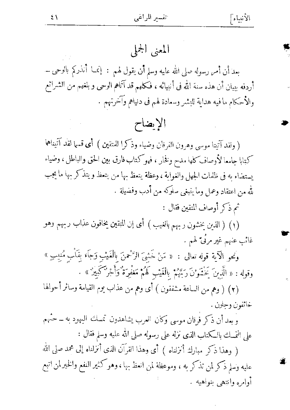 (1) (الَّذِينَ يَخْشَوْنَ رَبَّهُمْ بِالْغَيْبِ) أي إن المتقين يخافون عذاب ربهم وهو غائب عنهم غير مرئىّ لهم.