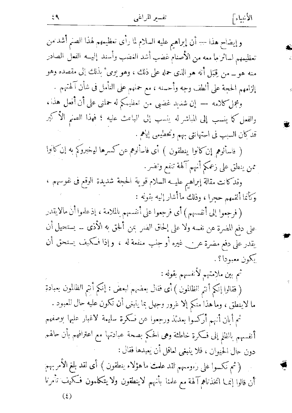 ومجمل كلامه- إن شديد غضبى من تعظيمكم له حملنى على أن أفعل هذا، والفعل كما ينسب إلى المباشر له ينسب إلى الباعث عليه فهذا الصنم الأكبر قد كان السبب فى استهانتى بهم وتحطيمى إياهم.