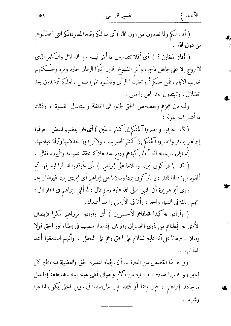 (أُفٍّ لَكُمْ وَلِما تَعْبُدُونَ مِنْ دُونِ اللَّهِ) أي تبّا لكم وقبحا لمعبوداتكم التي اتخذتموها من دون الله.