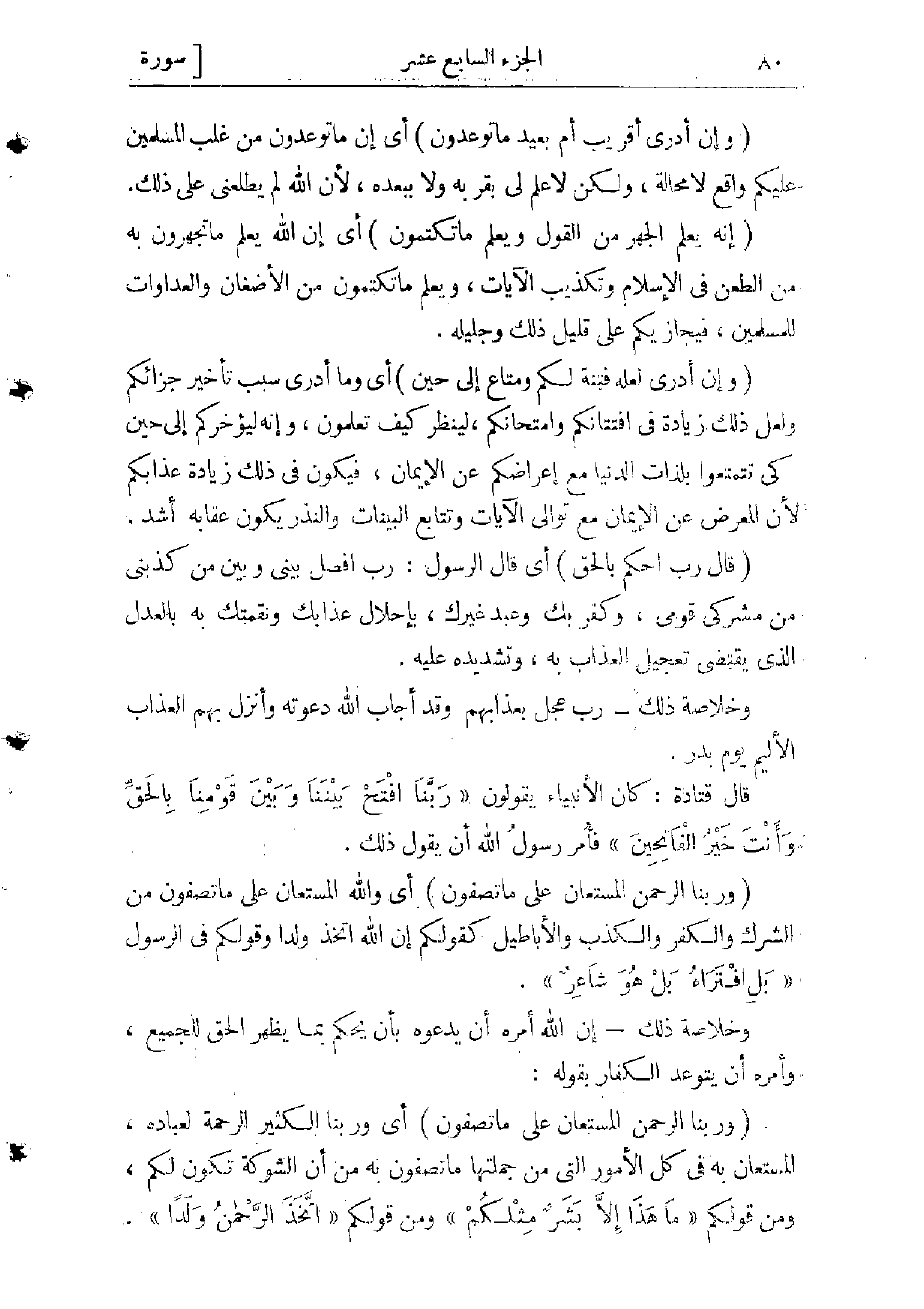 (وَإِنْ أَدْرِي أَقَرِيبٌ أَمْ بَعِيدٌ ما تُوعَدُونَ) أي وإن ما توعدون من غلب المسلمين عليكم واقع لا محالة، ولكن لا علم لى بقربه ولا ببعده، لأن الله لم يطلعنى على ذلك.