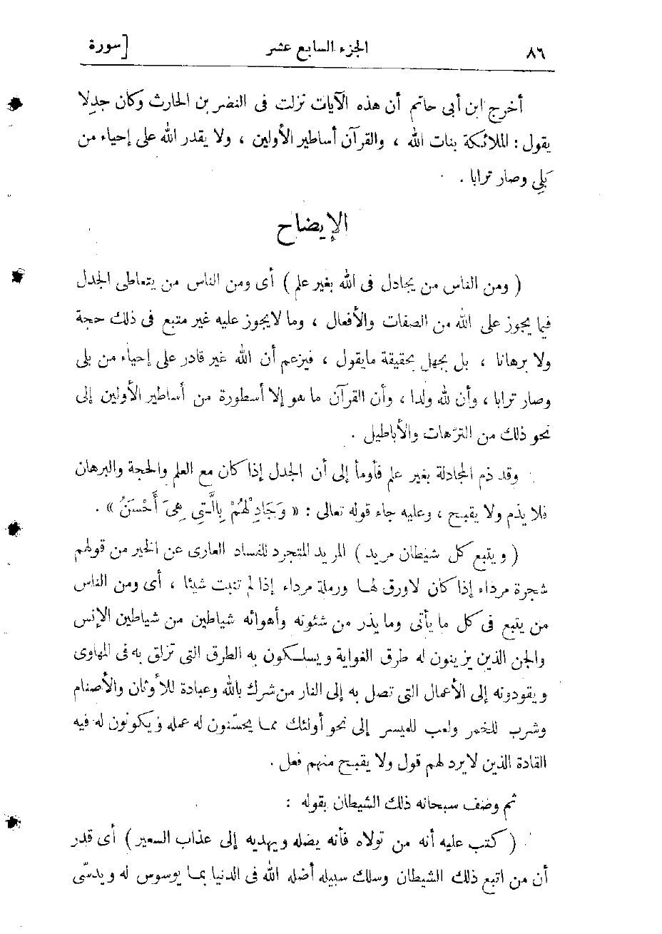 وقد ذم المجادلة بغير علم فأومأ إلى أن الجدل إذا كان مع العلم والحجة والبرهان فلا يدم ولا يقبح، وعليه جاء قوله تعالى: «وَجادِلْهُمْ بِالَّتِي هِيَ أَحْسَنُ» .