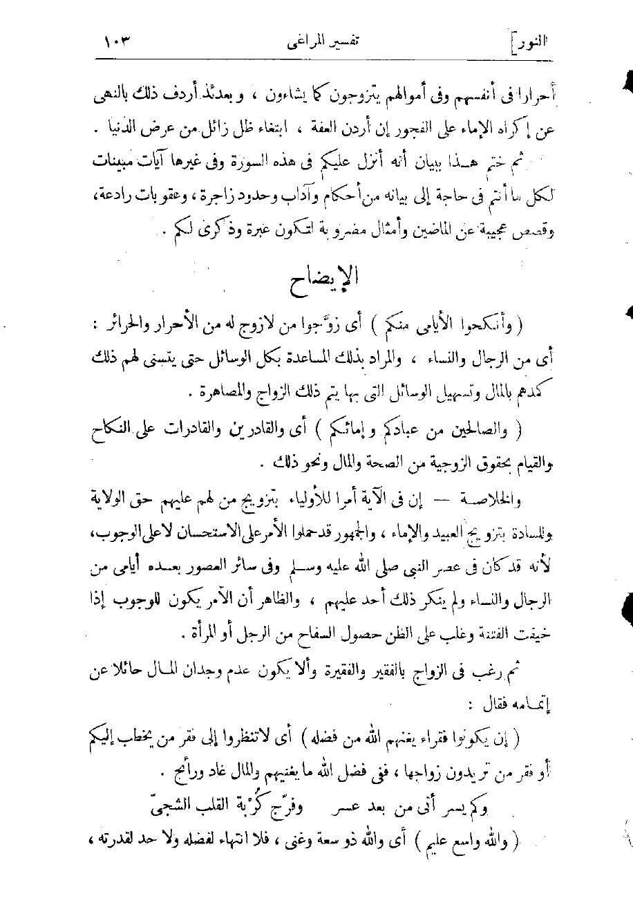 ثم رغّب فى الزواج بالفقير والفقيرة وألا يكون عدم وجدان المال حائلا عن إتمامه فقال: