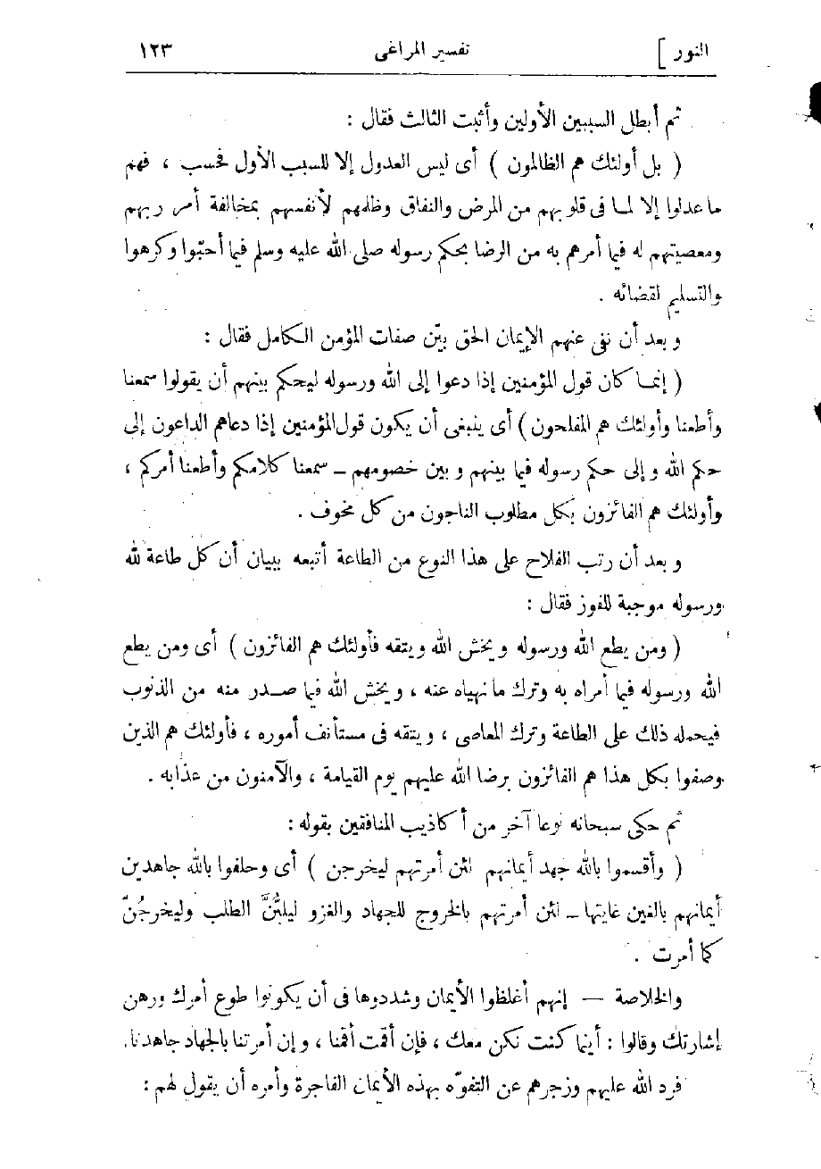 (إِنَّما كانَ قَوْلَ الْمُؤْمِنِينَ إِذا دُعُوا إِلَى اللَّهِ وَرَسُولِهِ لِيَحْكُمَ بَيْنَهُمْ أَنْ يَقُولُوا سَمِعْنا وَأَطَعْنا وَأُولئِكَ هُمُ الْمُفْلِحُونَ) أي ينبغى أن يكون قول المؤمنين إذا دعاهم الداعون إلى حكم الله ورسوله فيما بينهم وبين خصومهم- سمعنا كلامكم وأطعنا أمركم، وأولئك هم الفائزون بكل مطلوب، الناجون من كل مخوف.