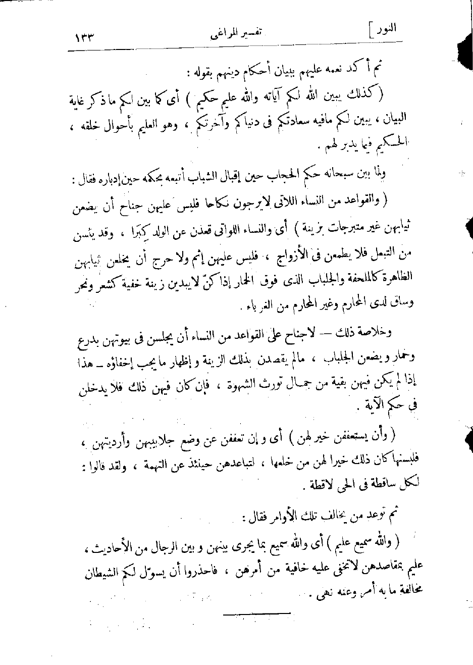 وخلاصة ذلك- لا جناح على القواعد من النساء أن يجلسن فى بيوتهن بدرع وخمار ويضعن الجلباب، ما لم يقصدن بذلك الزينة وإظهار ما يجب إخفاؤه- هذا إذا لم يكن فيهن بقية من جمال تورث الشهوة، فإن كان فيهن ذلك فلا يدخلن فى حكم الآية.