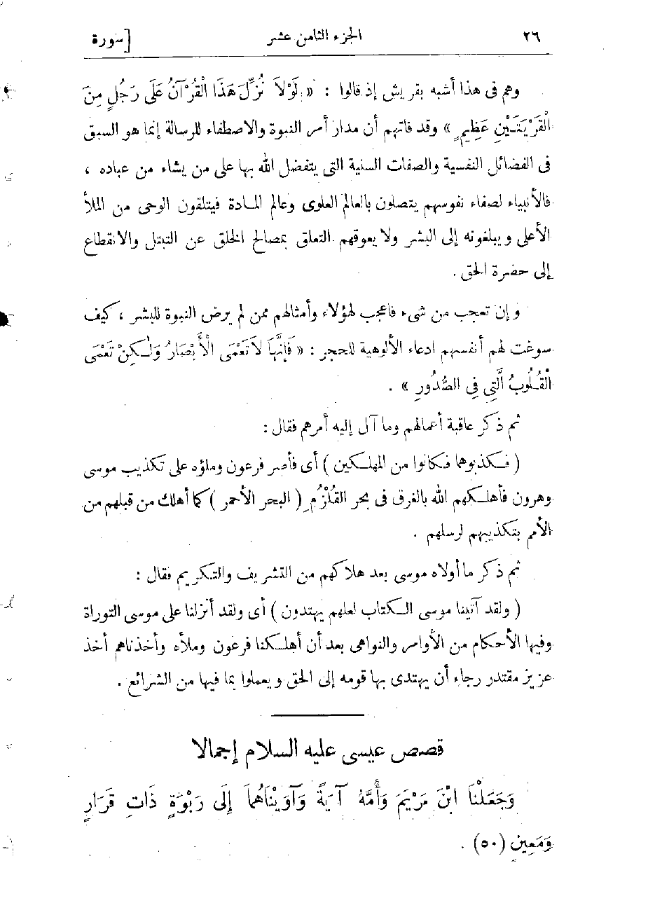 وهم فى هذا أشبه بقريش إذ قالوا: «لَوْلا نُزِّلَ هذَا الْقُرْآنُ عَلى رَجُلٍ مِنَ الْقَرْيَتَيْنِ عَظِيمٍ» وقد فاتهم أن مدار أمر النبوة والاصطفاء للرسالة إنما هو السبق فى الفضائل النفسية والصفات السنية التي يتفضل الله بها على من يشاء من عباده، فالأنبياء لصفاء نفوسهم يتصلون بالعالم العلوي وعالم المادة، فيتلقون الوحى من الملأ الأعلى ويبلغونه إلى البشر، ولا يعوقهم التعلق بمصالح الخلق، عن التبتل والانقطاع إلى حضرة الحق.