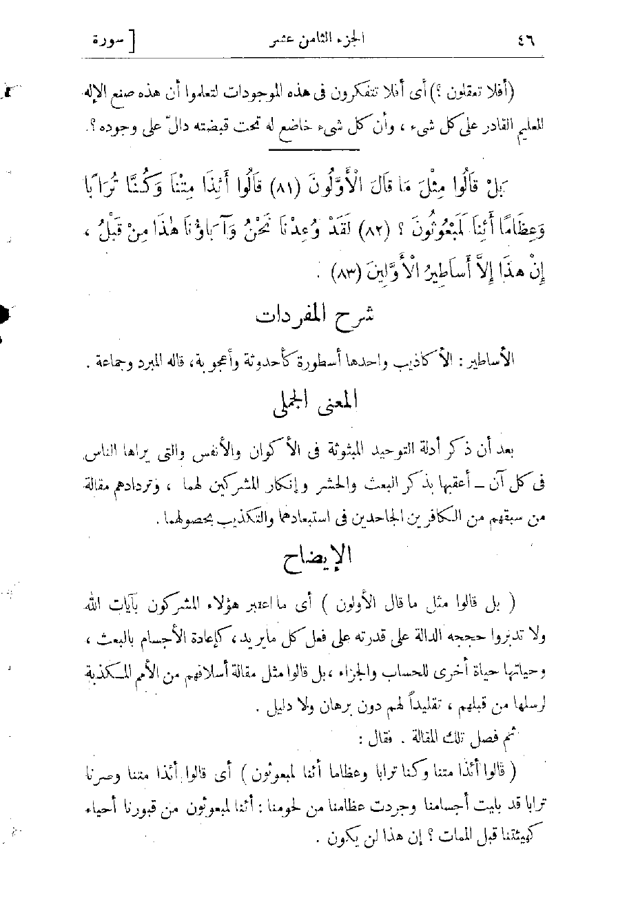بَلْ قالُوا مِثْلَ ما قالَ الْأَوَّلُونَ (81) قالُوا أَإِذا مِتْنا وَكُنَّا تُراباً وَعِظاماً أَإِنَّا لَمَبْعُوثُونَ (82) لَقَدْ وُعِدْنا نَحْنُ وَآباؤُنا هذا مِنْ قَبْلُ إِنْ هذا إِلاَّ أَساطِيرُ الْأَوَّلِينَ (83)