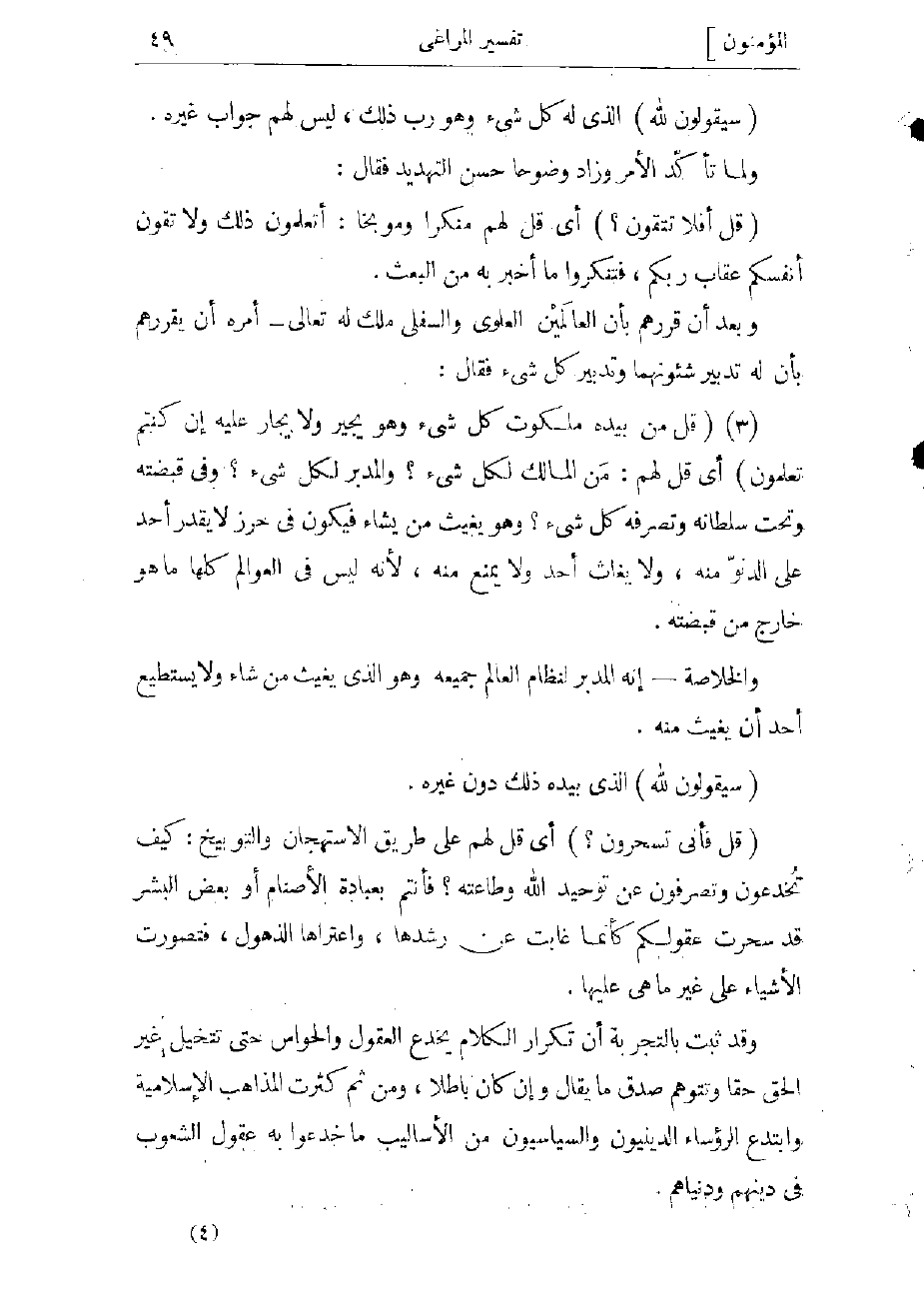 (3) (قُلْ مَنْ بِيَدِهِ مَلَكُوتُ كُلِّ شَيْءٍ وَهُوَ يُجِيرُ وَلا يُجارُ عَلَيْهِ إِنْ كُنْتُمْ تَعْلَمُونَ) أي قل لهم: من المالك لكل شىء؟ والمدبر لكل شىء؟ وفى قبضته وتحت سلطانه وتصرفه كل شىء؟ وهو يغيث من يشاء فيكون فى حرز لا يقدر أحد على الدنوّ منه، ولا يغاث أحد ولا يمنع منه، لأنه ليس فى العوالم كلها ما هو خارج من قبضته.