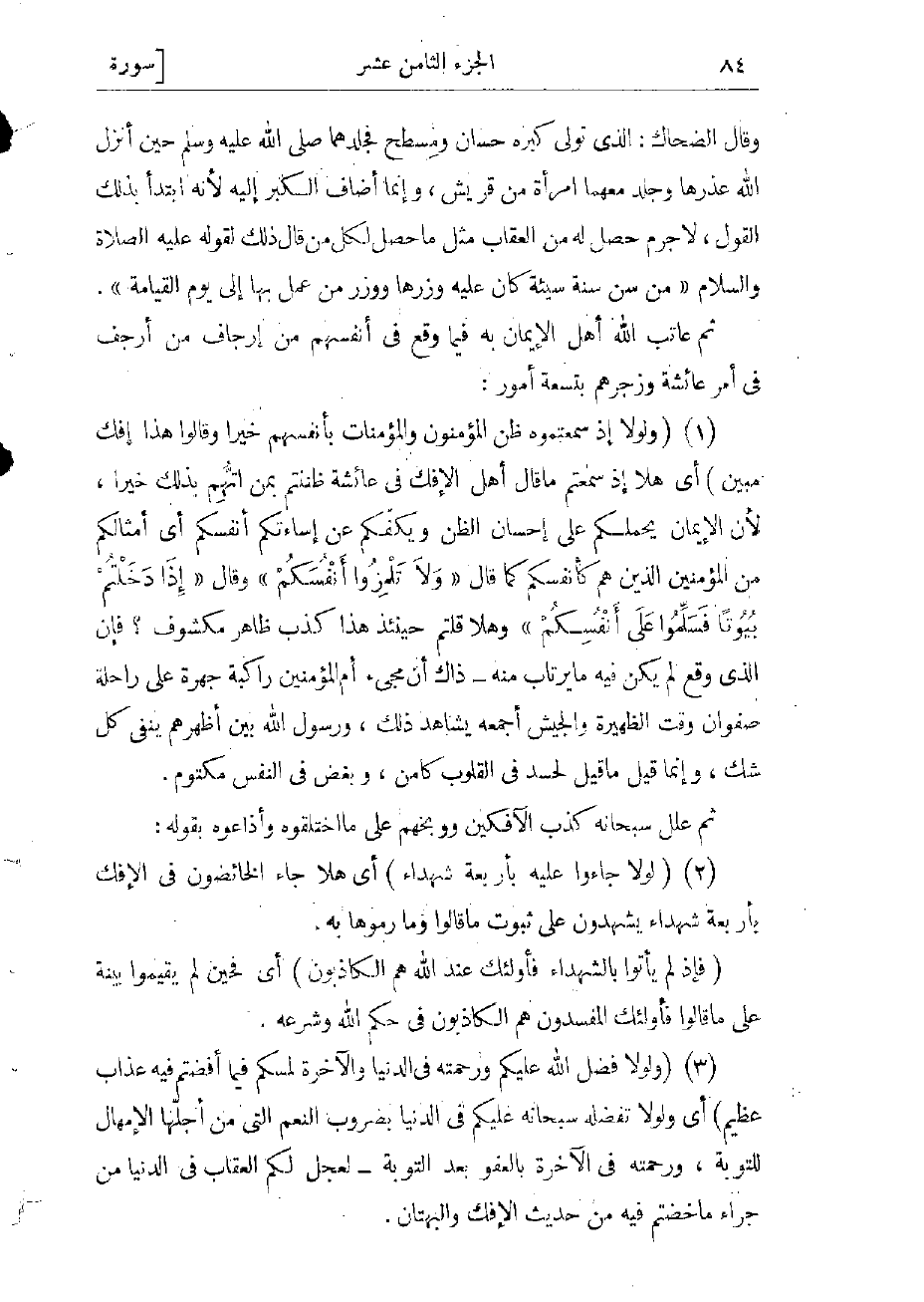 (2) (لَوْلا جاؤُ عَلَيْهِ بِأَرْبَعَةِ شُهَداءَ) أي هلا جاء الخائضون فى الإفك بأربعة شهداء يشهدون على ثبوت ما قالوا وما رموها به.