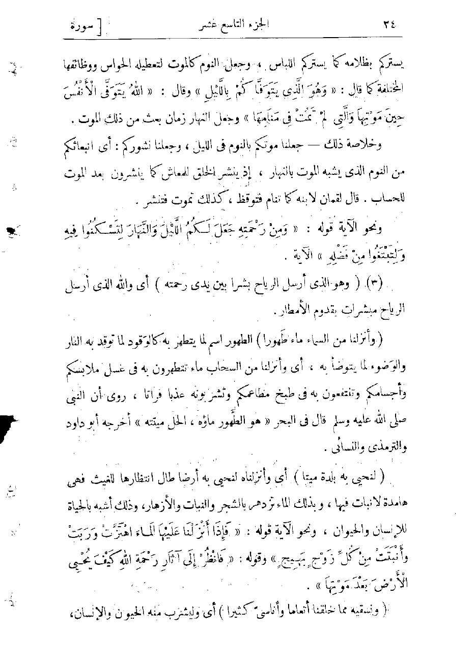ونحو الآية قوله: «فَإِذا أَنْزَلْنا عَلَيْهَا الْماءَ اهْتَزَّتْ وَرَبَتْ وَأَنْبَتَتْ مِنْ كُلِّ زَوْجٍ بَهِيجٍ» وقوله: «فَانْظُرْ إِلى آثارِ رَحْمَتِ اللَّهِ كَيْفَ يُحْيِ الْأَرْضَ بَعْدَ مَوْتِها» (وَنُسْقِيَهُ مِمَّا خَلَقْنا أَنْعاماً وَأَناسِيَّ كَثِيراً)