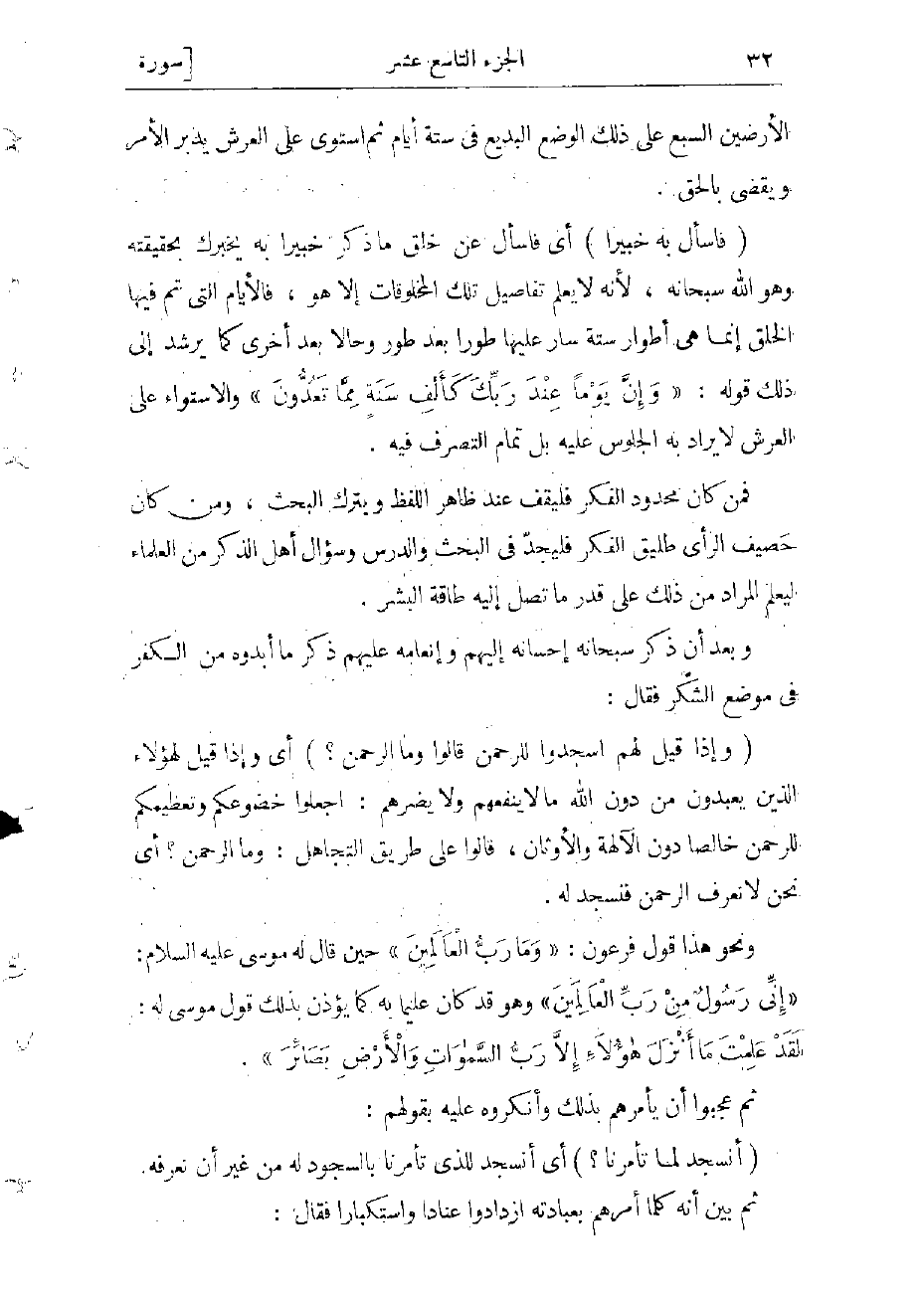 فمن كان محدود الفكر فليقف عند ظاهر اللفظ ويترك البحث فيه، ومن كان حصيف الرأى طليق الفكر فليجدّ فى البحث والدرس وسؤال أهل الذكر من العلماء ليعلم المراد من ذلك على قدر ما تصل إليه طاقة البشر.