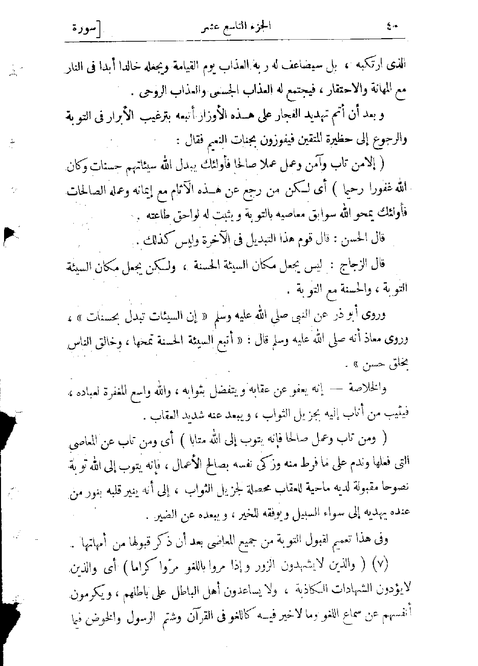وقال الزجاج: ليس يجعل مكان السيئة الحسنة، ولكن يجعل مكان السيئة التوبة، والحسنة مع التوبة.