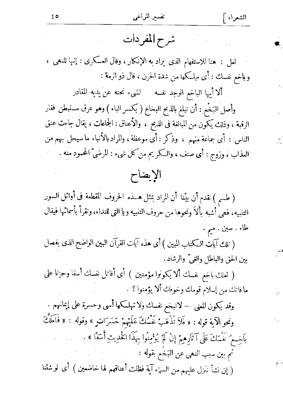 وأصل البخع: أن تبلغ بالذّبح البخاع (بكسر الباء) وهو عرق مستبطن فقار الرقبة، وذلك يكون من المبالغة فى الذبح، والأعناق: الجماعات، يقال جاءت عنق الناس: أي جماعة منهم، وذكر: أي موعظة، والمراد بالأنباء ما سيحل بهم من العذاب، وزوج: أي صنف، والكريم من كل شىء: المرضىّ المحمود منه.