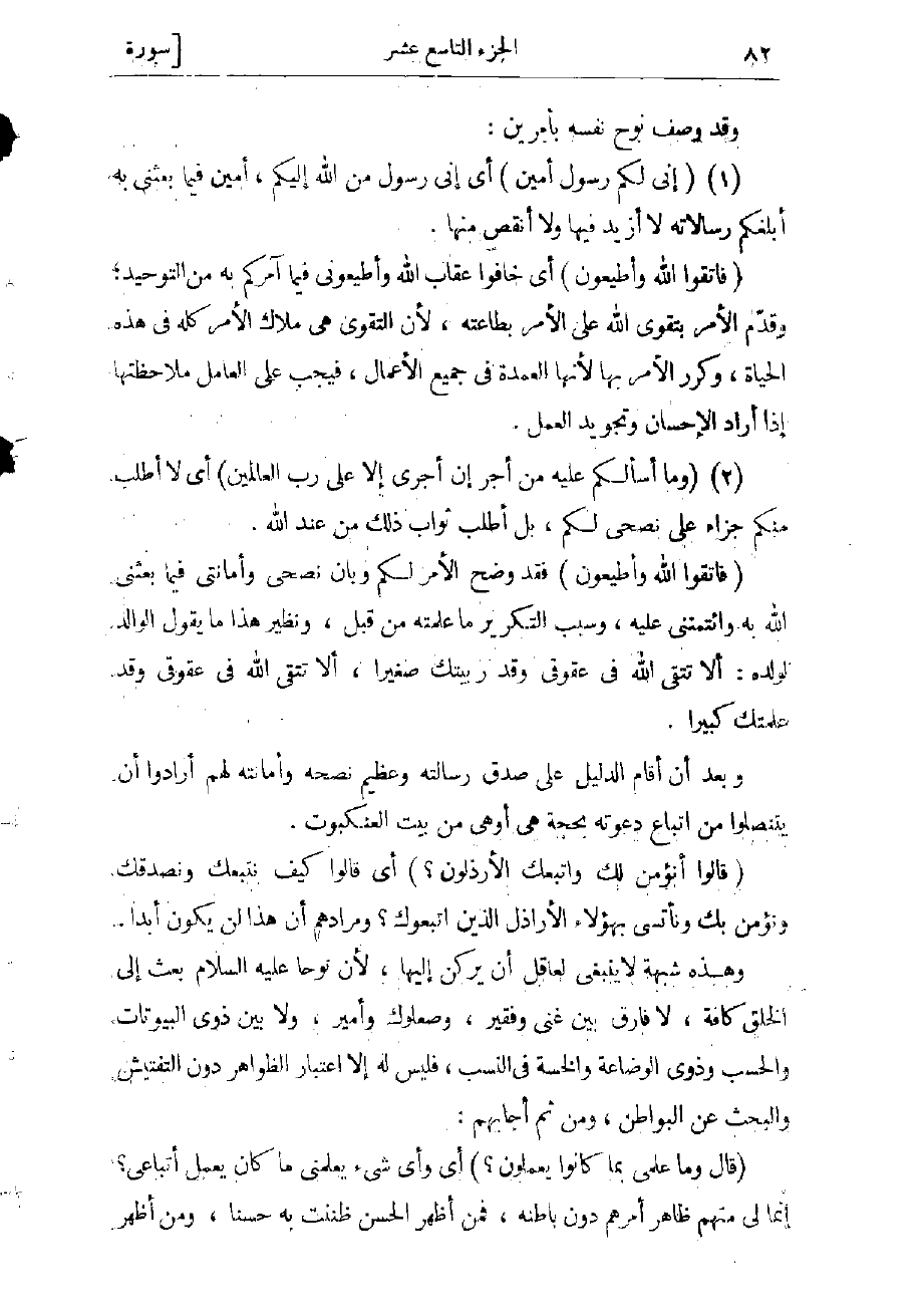(1) (إِنِّي لَكُمْ رَسُولٌ أَمِينٌ) أي إنى رسول من الله إليكم، أمين فيما بعثني به، أبلغكم رسالاته، لا أزيد فيها، ولا أنقص منها.
