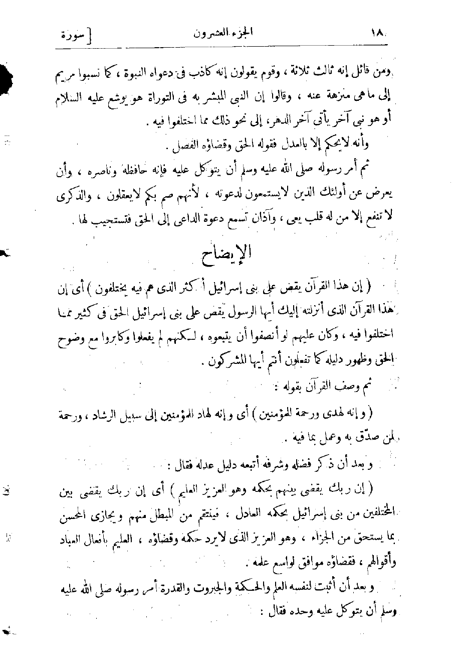 إنه ثالث ثلاثة، وقوم يقولون إنه كاذب فى دعواه النبوة، كما نسبوا مريم إلى ما هى منزهة عنه، وقالوا إن النبي المبشّر به فى التوراة هو يوشع عليه السلام أو هو نبى آخر يأتى آخر الدهر. إلى نحو ذلك مما اختلفوا فيه، وأنه لا يحكم إلا بالعدل، فقوله الحق وقضاؤه الفصل.