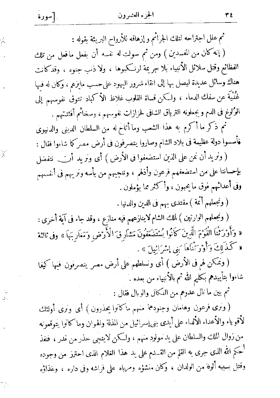 (إِنَّهُ كانَ مِنَ الْمُفْسِدِينَ) ومن ثم سولت له نفسه أن يفعل ما فعل من تلك الفظائع، وقتل سلائل الأنبياء بلا جريمة ارتكبوها، ولا ذنب جنوه، وقد كانت هناك وسائل عديدة ليصل بها إلى اتقاء شرور اليهود بحسب ما يزعم، وكان له فيها غنية عن سفك الدماء، ولكن قساة القلوب غلاظ الأكباد تتوق نفوسهم إلى الولوغ فى الدم، ويجعلونه الترياق الشافي لحزازات نفوسهم، وسخائم أفئدتهم.