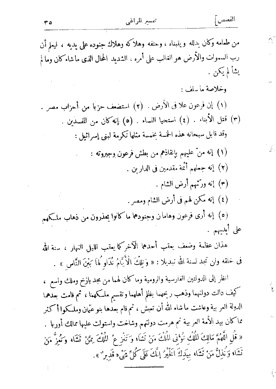 انظر إلى الدولتين الفارسية والرومية، وما كان لهما من مجد بازخ، وملك واسع، كيف دالت دولتهما، وذهب ريحهما بظلم أهلهما، وتقسّم ملكهما، ثم قامت بعدهما الدولة العربية وعاشت ما شاء الله أن تعيش، ثم قام بعدها بنو عثمان وملكوا أكثر مما كان بيد الأمة العربية، ثم هرمت دولتهم وشاخت واستولت عليها ممالك أوروبا.