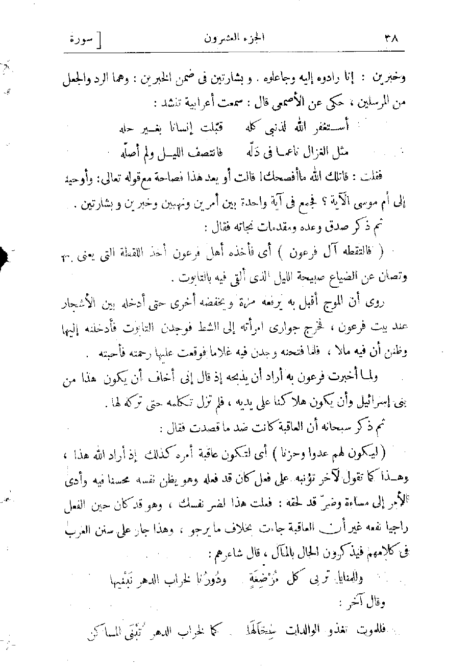 فقلت: قاتلك الله ما أفصحك! قالت أو يعد هذا فصاحة مع قوله تعالى: (وَأَوْحَيْنا إِلى أُمِّ مُوسى) الآية؟ فجمع فى آية واحدة بين أمرين ونهيين وخبرين وبشارتين.