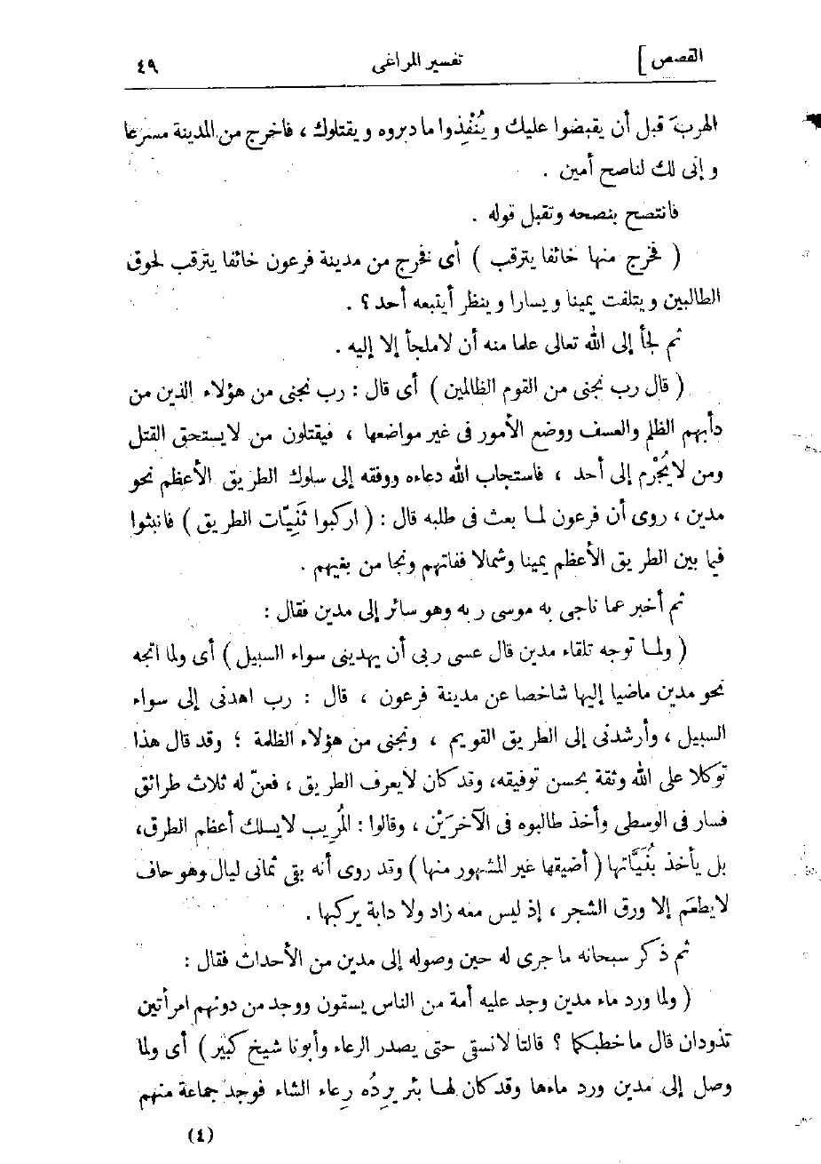 (وَلَمَّا تَوَجَّهَ تِلْقاءَ مَدْيَنَ قالَ عَسى رَبِّي أَنْ يَهْدِيَنِي سَواءَ السَّبِيلِ) أي ولما اتجه نحو مدين ماضيا إليها شاخصا عن مدينة فرعون، قال: رب اهدني إلى سواء السبيل، وأرشدنى إلى الطريق القويم، ونجنى من هؤلاء الظلمة وقد قال هذا توكلا على الله، وثقة بحسن توفيقه، وقد كان لا يعرف الطريق، فعنّ له ثلاث طرائق فسار فى الوسطى وأخذ طالبوه فى الآخرين، وقالوا: المريب لا يسلك أعظم الطرق، بل يأخذ بنيّاتها (أضيقها غير المشهور منها) وقد روى أنه بقي ثمانى ليال وهو حاف لا يطعم إلا ورق الشجر، إذ ليس معه زاد ولا دابة يركبها.