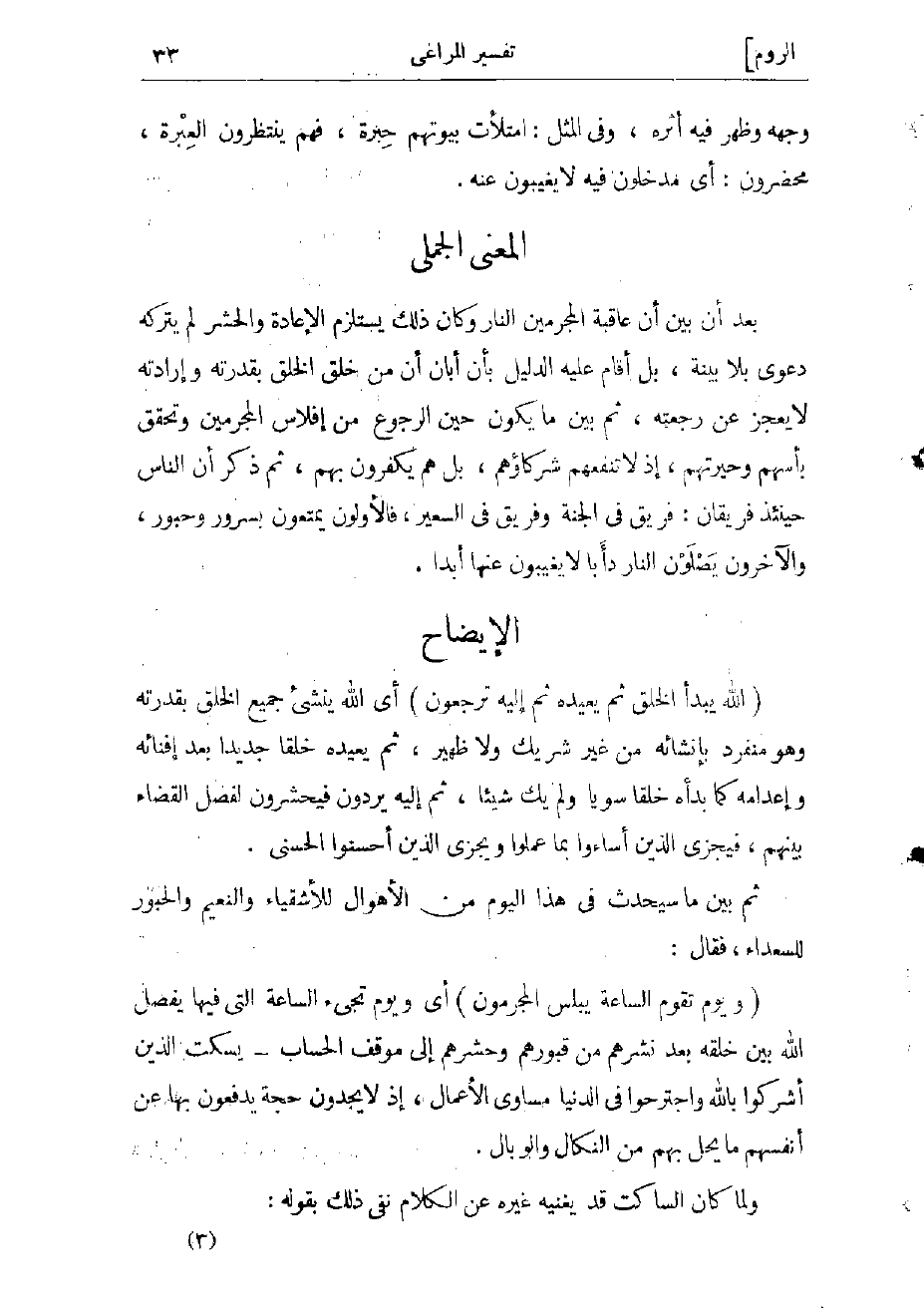 (اللَّهُ يَبْدَؤُا الْخَلْقَ ثُمَّ يُعِيدُهُ ثُمَّ إِلَيْهِ تُرْجَعُونَ) أي الله ينشىء جميع الخلق بقدرته، وهو منفرد بإنشائه من غير شريك ولا ظهير، ثم يعيده خلقا جديدا بعد إفنائه وإعدامه كما بدأه خلقا سويا ولم يك شيئا، ثم إليه يردّون فيحشرون لفصل القضاء بينهم، فيجزى الذين أساءوا بما عملوا ويجزى الذين أحسنوا بالحسنى.