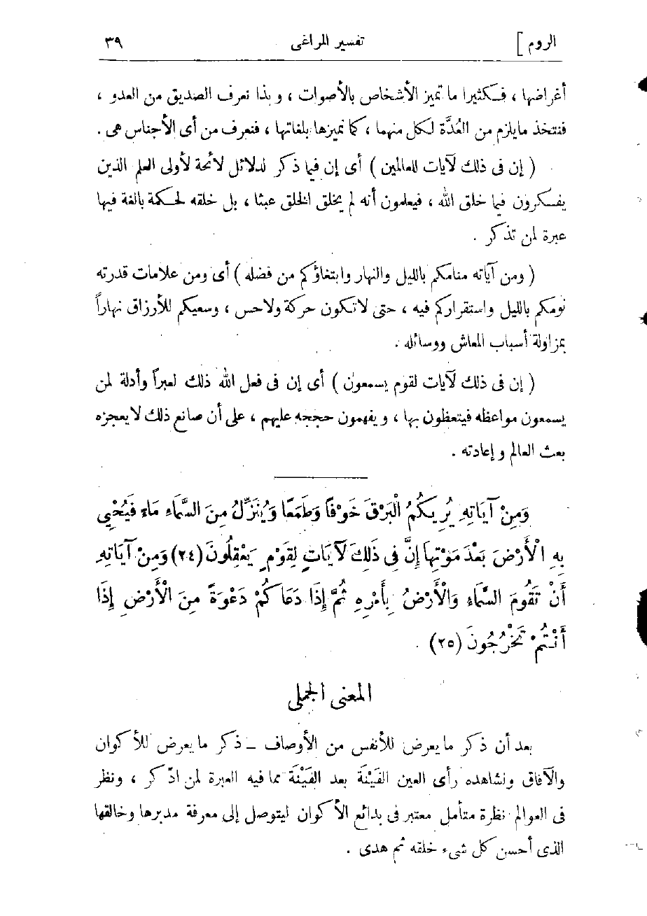 بعد أن ذكر ما يعرض للأنفس من الأوصاف- ذكر ما يعرض للأكوان والآفاق ونشاهده رأى العين الفينة بعد الفينة، مما فيه العبرة لمن ادّكر، ونظر فى العوالم نظرة متأمل معتبر فى بدائع الأكوان، ليتوصّل إلى معرفة مدبرها وخالقها الذي أحسن كل شىء خلقه ثم هدى.