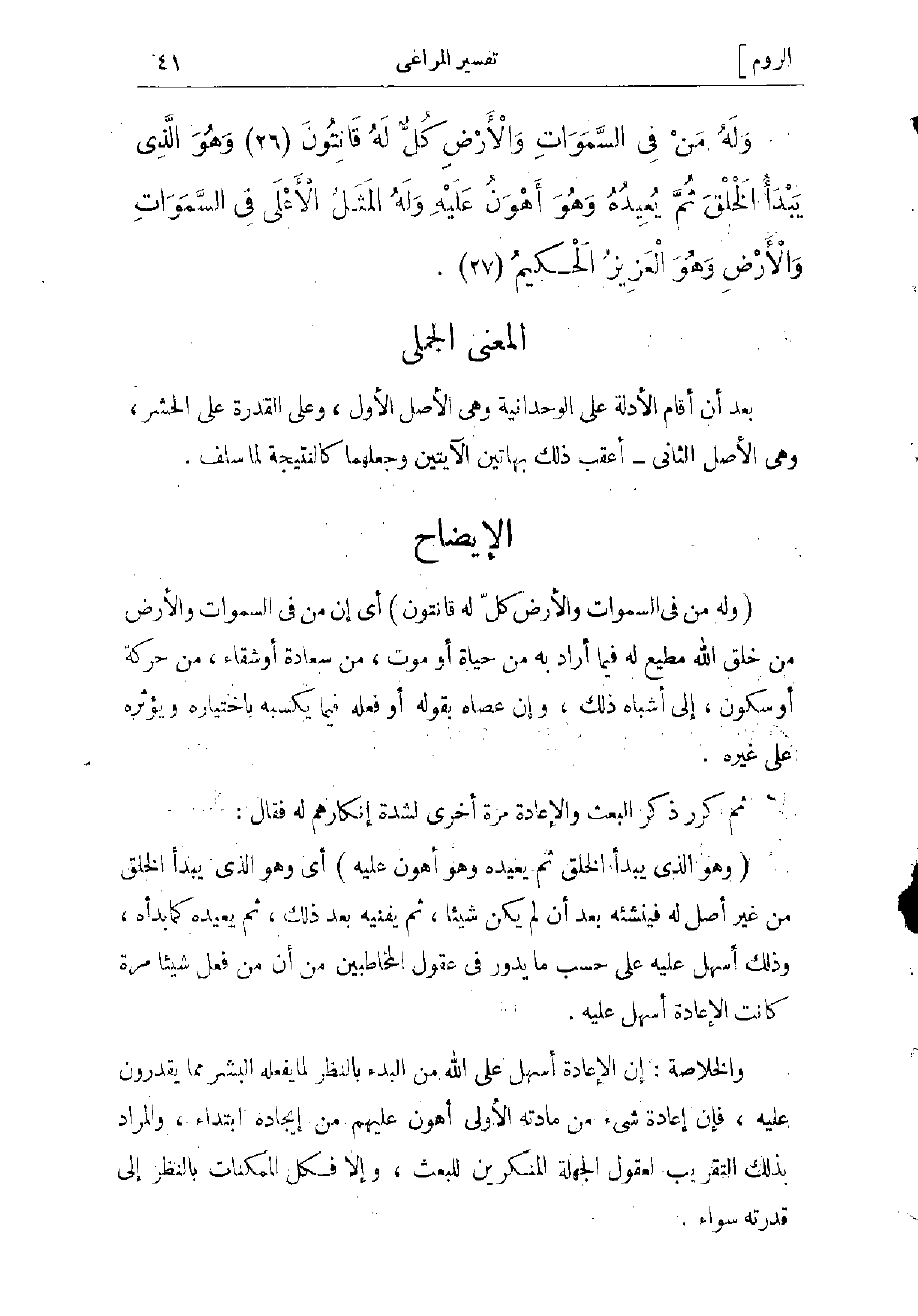 والخلاصة: إن الإعادة أسهل على الله من البدء بالنظر لما يفعله البشر مما يقدرون عليه، فإن إعادة شىء من مادته الأولى أهون عليهم من إيجاده ابتداء والمراد بذلك التقريب لعقول الجهلة المنكرين للبعث، وإلا فكل الممكنات بالنظر إلى قدرته سواء.