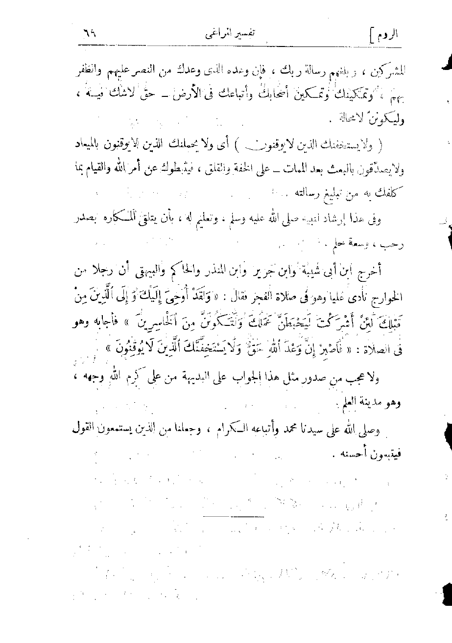 (وَلا يَسْتَخِفَّنَّكَ الَّذِينَ لا يُوقِنُونَ) أي ولا يحملنك الذين لا يوقنون بالميعاد ولا يصدقون بالبعث بعد الممات- على الخفة والقلق، فيثبطوك عن أمر الله والقيام بما كلفك به من تبليغ رسالته.