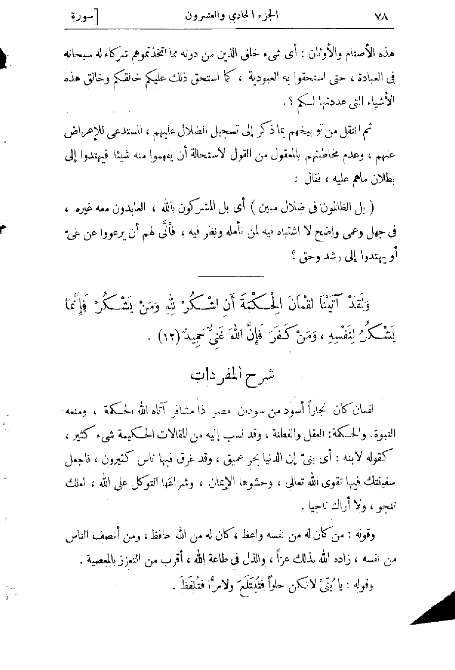لقمان كان نجارا أسود من سودان مصر ذا مشافر آتاه الله الحكمة، ومنحه النبوة.