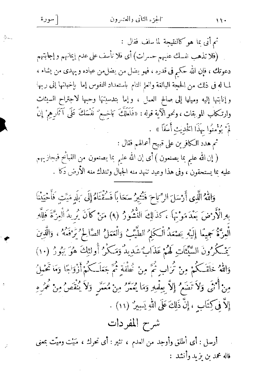 ونحو الآية قوله: «فَلَعَلَّكَ باخِعٌ نَفْسَكَ عَلى آثارِهِمْ إِنْ لَمْ يُؤْمِنُوا بِهذَا الْحَدِيثِ أَسَفاً» .