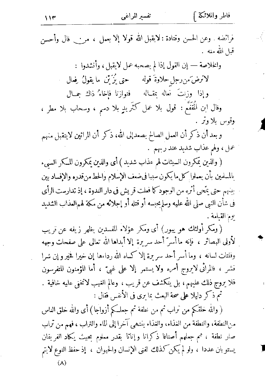 وبعد أن ذكر أن العمل الصالح يصعد إلى الله، ذكر أن المرائين لا يتقبل منهم عمل، ولهم عذاب شديد عند ربهم قال: