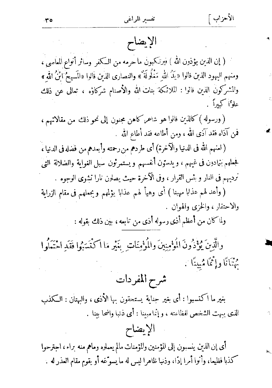 بغير ما اكتسبوا: أي بغير جناية يستحقون بها الأذى، والبهتان: الكذب الذي يبهت الشخص لفظاعته، وإثما مبينا: أي ذنبا واضحا بينا.