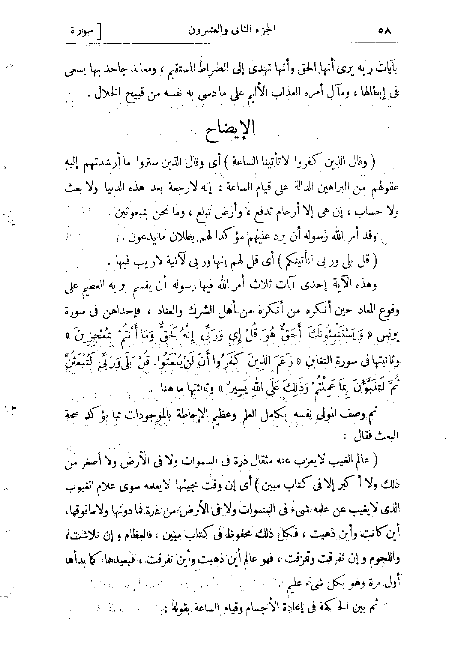 وهذه الآية إحدى آيات ثلاث أمر الله فيها رسوله أن يقسم بربه العظيم على وقوع المعاد حين أنكره من أنكره من أهل الشرك والعناد، فإحداهن في سورة يونس «وَيَسْتَنْبِئُونَكَ أَحَقٌّ هُوَ قُلْ إِي وَرَبِّي إِنَّهُ لَحَقٌّ وَما أَنْتُمْ بِمُعْجِزِينَ» وثانيتها فى سورة التغابن «زَعَمَ الَّذِينَ كَفَرُوا أَنْ لَنْ يُبْعَثُوا، قُلْ بَلى وَرَبِّي لَتُبْعَثُنَّ ثُمَّ لَتُنَبَّؤُنَّ بِما عَمِلْتُمْ وَذلِكَ عَلَى اللَّهِ يَسِيرٌ» وثالثتها ما هنا.