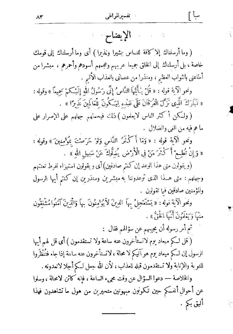 ونحو الآية قوله: «قُلْ يا أَيُّهَا النَّاسُ إِنِّي رَسُولُ اللَّهِ إِلَيْكُمْ جَمِيعاً» وقوله: