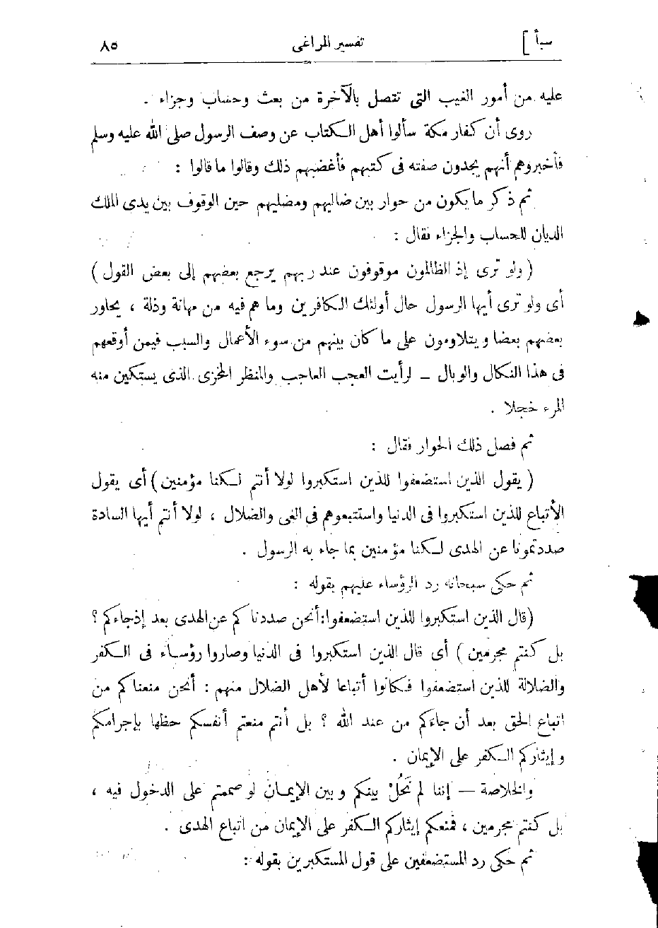(يَقُولُ الَّذِينَ اسْتُضْعِفُوا لِلَّذِينَ اسْتَكْبَرُوا لَوْلا أَنْتُمْ لَكُنَّا مُؤْمِنِينَ) أي يقول الأتباع للذين استكبروا في الدنيا واستتبعوهم في الغى والضلال، لولا أنتم أيها السادة صدد نمونا عن الهدى لكنا مؤمنين بما جاء به الرسول.