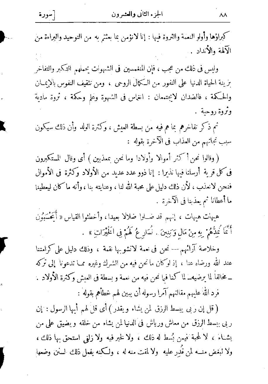 وليس في ذلك من عجب، فإن المنغمسين في الشهوات يحملهم التكبر والتفاخر بزينة الحياة الدنيا على النفور من الكمال الروحي، ومن تثقيف النفوس بالإيمان والحكمة، فالضدان لا يجتمعان: انغماس في الشهوة وعلم وحكمة، ثروة مادية وثروة روحية.