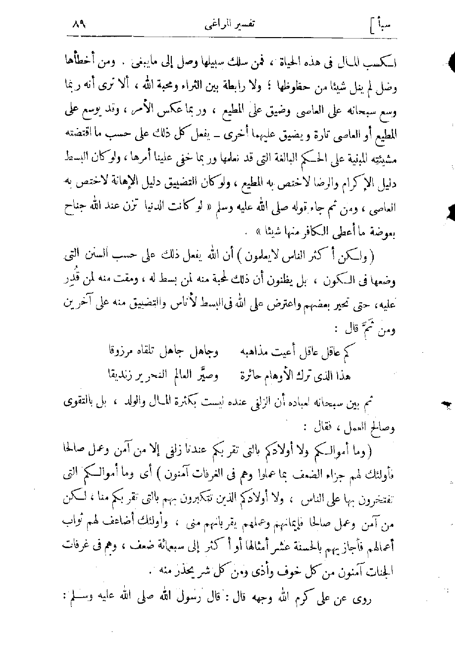 لكسب المال في هذه الحياة، فمن سلك سبيلها وصل إلى ما يبغى. ومن أخطأها وضل لم ينل شيئا من حظوظها، ولا رابطة بين الثراء ومحبة الله، ألا ترى أنه ربما وسع سبحانه على العاصي وضيق على المطيع، وربما عكس الأمر، وقد يوسع على المطيع والعاصي تارة ويضيق عليهما أخرى- يفعل كل ذلك بحسب ما اقتضته مشيئته المبنية على الحكم البالغة التي قد نعلمها وربما خفى علينا أمرها، ولو كان البسط دليل الإكرام والرضا لا ختصّ به المطيع، ولو كان التضييق دليل الإهانة لا ختص به العاصي، ومن ثم جاء