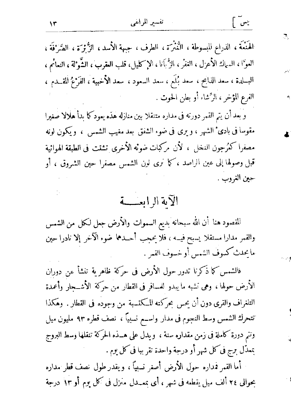 أما القمر فمداره حول الأرض أصغر نسبيا، ويقدر طول نصف قطر مداره بحوالى 24 ألف ميل يقطعه في شهر، أي بمعدل منزل في كل يوم أو 13 درجة