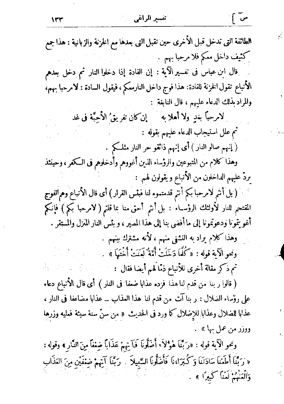 «رَبَّنا إِنَّا أَطَعْنا سادَتَنا وَكُبَراءَنا فَأَضَلُّونَا السَّبِيلَا. رَبَّنا آتِهِمْ ضِعْفَيْنِ مِنَ الْعَذابِ وَالْعَنْهُمْ لَعْناً كَبِيراً» .