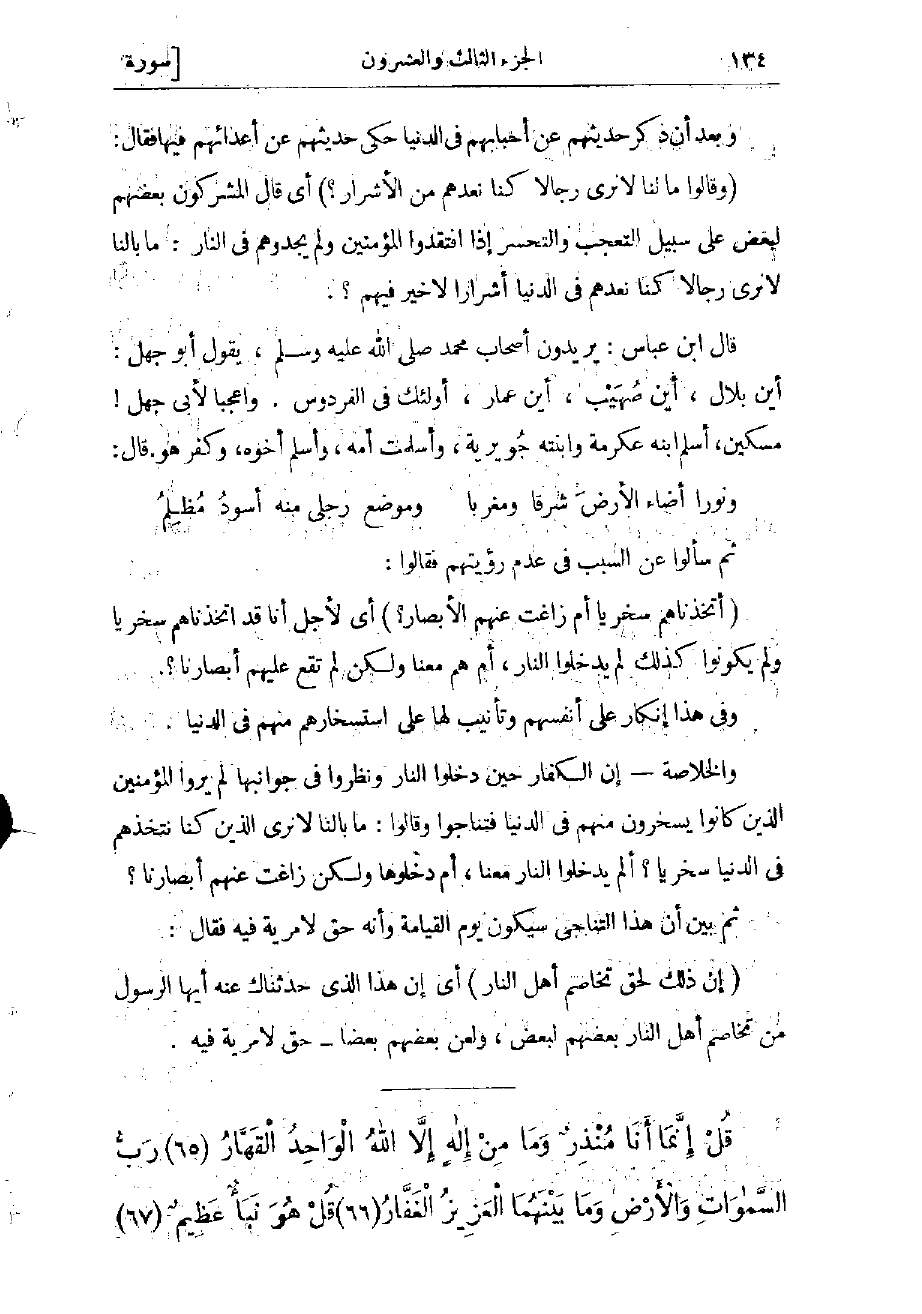 قال ابن عباس: يريدون أصحاب محمد صلّى الله عليه وسلم، يقول أبو جهل: أين بلال: أين صهيب، أين عمار، أولئك في الفردوس. وا عجبا لأبى جهل! مسكين، أسلم ابنه عكرمة وابنته جويرية، وأسلمت أمه، وأسلم أخوه، وكفر هو. قال: